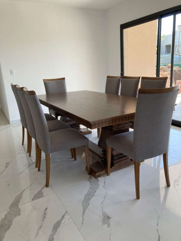 The color of your dining table and chairs should tie into the color scheme of your dining room. Lighter woods or painted tables work well in rooms with neutral tones, while darker woods provide contrast and a sense of sophistication.