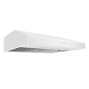 This 24”/30” wide white/stainless steel under cabinet range hood is a durable companion for your kitchen. Featuring an ultra-strong motor, mechanical buttons, two baffle filters, and a stripe LED light, this unit will take your cooking experience to a new level.