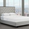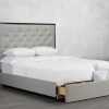 Style and sophistication. This headboard will make an impact in any bedroom with bold, deep button tufting and clean, straight lines. A black wood trim adds a level of sophistication. Available as a headboard, headboard and bed, and headboard, bed and drawer.