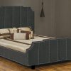 The centrepiece of your bedroom, this upholstered headboard and bed is sure to make a statement with its luxurious, deep tufting, bevelled corners and hand-applied nailhead trim. Canadian made, hand built to order.