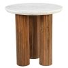This elegant and refined table is expertly crafted from sustainably sourced solid mango wood, offering a strong and durable base. The pedestal features a stunning reeded finish, beautifully complemented by a thick, beveled marble top. Together, these elements create a sophisticated piece that will enhance the aesthetic of your thoughtfully curated space.