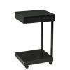 Perfect for small spaces, this stand can be used for a variety of purposes. Its simplistic design features two tiers: a lower tier for decorative items or keeping essential items easily accessible, and the top tier is ideal for a laptop. Set on top of four rolling wheels, the stand can be moved with ease; use it while seated or when standing, and easily roll it away when not in use. The flush, flat panel drawer offers additional, out-of-sight storage for CDs, chargers and other small accessories