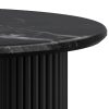 This gorgeous and sophisticated table is meticulously crafted from sustainably-sourced, solid mango wood, providing a rich and sturdy foundation. The reeded finish on the pedestal is perfectly topped with a thick, bevelled marble top creating a refined piece that will elevate your carefully designed space.