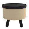 Great things come in small packages and this round storage ottoman is no exception. The versatility is unmatched – storage for when you want to stash your knick knacks, removable tray for when you want to serve drinks, sturdy wooden legs for when you need an extra seat or a place to kick up your feet. Use alone or cluster several pieces together to create your own look.