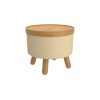 Great things come in small packages and this round storage ottoman is no exception. The versatility is unmatched – storage for when you want to stash your knick knacks, removable tray for when you want to serve drinks, sturdy wooden legs for when you need an extra seat or a place to kick up your feet. Use alone or cluster several pieces together to create your own look.
