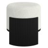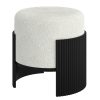 Add a touch of refined texture to your living space with this round ottoman, a perfect blend of comfort and style. Upholstered in luxurious boucle fabric, the plush top invites you to sit or rest your feet in ultimate coziness. The ottoman’s standout feature is its reeded wood silhouette that wraps around the outside, offering a sophisticated contrast to the soft fabric and adding a touch of modern craftsmanship. Compact yet eye-catching, this ottoman is ideal for use as a footrest, extra seating, or a stylish accent piece that enhances any room with its blend of warmth and texture.
