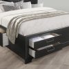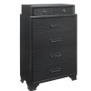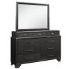 Lots of features and functionality are smartly tucked away in this modern classic bedroom group. Between the storage headboard, under-bed drawers and tall, 9 drawer dresser, it’s easy to keep your room a showplace. With Grey lacquer finish on carved drawer fronts and Nickel hardware to complete the look.