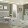 Introduce a clean and modern look to your bedroom with this white bedroom set! This set includes a platform bed, dresser with mirror, nightstand, and chest, all featuring a white finish, perfect for creating a bright and airy feel in your bedroom.