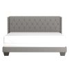 Elegant styling made easy with the bed-in-box packaging. The formidable headboard with the button tufting and nail head detailing will look spectacular in a principle bedroom or be extra welcoming in a guest bedroom. Sturdy solid wood slats support your box spring and mattress well.