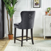 Grey Velvet Plush Cushioned Barstool with Chrome Nailhead and Chrome Ring