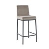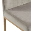 Contemporary counter height stool with a rich-looking combination of velvet upholstered seat and matte aged gold stool frame. The low back provides ample back support while giving the stool a sleek, modern look. Great for a casual breakfast bar or for the fancy basement bar where you can spend hours conversing with guests.