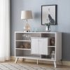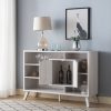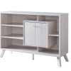 Add a touch of glamour to your in-home dining experience with this stunning multi-tiered buffet. The ample storage space provided by the storage cabinet and five open shelves combine form and functionality. It lustrous sheen and polished silver hardware enhance elegance, and the rich walnut finish brings sophistication and modernism to your dining space.