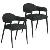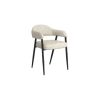 This modern dining chair is eye candy for your dining space. The curved back provide high support and comfort and the thick textured fabric is warm and inviting. Sleek black metal legs ensure this chair will work with any style table in any style room. Also great as an accent piece in a bedroom, living room, or hallway.