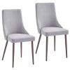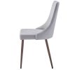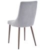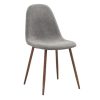 Composed of wood, fabric, and metal, this side chair is a show stopper all its own. With its curved wood seat frame, seat cushion covered in fabric upholstery, and metal legs emblazoned with a walnut finish through the process of heat transferring, this chair unifies a multitude of elements all into one perfectly composed design. The comfortable seat allows for hours of conversation around the dinner table, while the slim, tapered look of the metal legs adds a splash of sex appeal. The versatility of this unique piece allows it to be styled with a variety of furnishings.