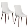 Classic mid-century modern styling with a contemporary twist. Faux leather upholstery sits beautifully on the walnut-wrapped metal legs. Clean line design is an easy match to a variety of table styles. Use in a formal or casual setting.