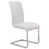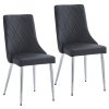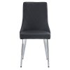 Composed of wood, faux leather, and metal, this side chair is a show stopper all its own. With its curved wood seat frame, seat cushion covered in faux leather upholstery with stitching details on the back, and chrome-finished metal legs, this chair unifies a multitude of elements all into one perfectly composed design. The comfortable seat allows for hours of conversation around the dinner table, while the slim, tapered look of the metal legs adds a splash of sophisticated design. The versatility of this unique piece allows it to be styled with a variety of table styles and finishes