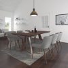 Upon entrance into the dining area, this contemporary table makes its presence known with appealing finishes, interesting stainless steel components, and a sleek geometric design that grabs attention and never lets go. Fashioned out of both wood and metal, the compelling and contrasting composition of this piece makes a striking statement while complementing a multitude of different chair styles and décor. Whether being used for gatherings big or small, the unique qualities of this dining table will pique your guest’s interest and act as a conversation starter all its own.