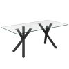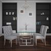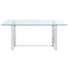 Open up your space with this beautiful contemporary dining table. The silver finish on the unique geometric-patterned legs gives a little sparkle to the light and airy look of the glass-topped table. It will look stunning with four chairs but will comfortably accommodate 6 – and mix and match with different chair styles and finishes to create the perfect look that works for you!