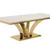 The table top is made up of gold texture with white beige marble top , which gives it a minimalist yet edgy look.