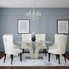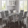 Embrace the classic look of marble and make it modern with this fun dining table. All the finishings – from the marble-look paper veneer to the stainless steel wrap on the base – give this piece a high end look without breaking your budget. The fun, geometric base provides plenty of visual interest and the warm grey finish allows for any easy mix with any colour scheme. Choose the chair that works for you and make the space your own.