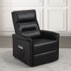 Plush comfort meets sophisticated style in the Recliner Lift Chair from Brassex. This recliner chair is available in a sleek and versatile black color that will complement a wide range of home décors, and has a slim profile designed to fit in most compact spaces. Featuring a power lift function and a multi-position power reclining mechanism, this recliner lift chair is built for ergonomic comfort and supports proper back alignment while you’re relaxing with a book or watching TV. It’s even equipped with a convenient side pouch to hold the TV remote, magazines, and more. With a padded headrest, armrests, backrest, and footrest for plush comfort and a rich fabric cover that provides an extra luxurious look and feel, this lift recliner chair will quickly become your favourite seat in the house.