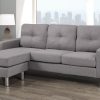 Complete your living room or family room with this simply stylish and comfortable sectional sofa. With its contemporary design and neutral grey colour, the sofa is a versatile choice that complements a range of interiors and easily fits with existing furnishings. Upholstered in durable 100% polyester fabric, the sectional is easy to maintain for lasting comfort you’ll appreciate. Tufted cushions and chrome finished legs bring a level of modern sophistication. For added convenience, the chaise gives you a place to stretch out, and it can be placed on the left or right side of the sectional to best suit your personal living space. Crafted for quality, it’s constructed with a sturdy plywood frame and features foam and pocket-spring seating for supportive comfort you can sink back into.