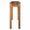 The natural beauty of Indian Sheesham wood shows in this solid wood, hand-crafted table. Compact sizing makes this a great piece for a narrow hallway or entryway. The functional drawer is a great catch-all for keys and other knick knacks. Experience piece-of-mind knowing that this table is made with “green” materials. Wood characteristics include; mineral deposits, irregular grain patterns, and unusual knots. Any of these may occur with changes in humidity and other severe climate conditions and are inherent in product.