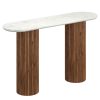 This gorgeous and sophisticated table is meticulously crafted from sustainably-sourced, solid mango wood, providing a rich and sturdy foundation. The reeded finish on the pedestal is perfectly topped with a thick, bevelled marble top creating a refined piece that will elevate your carefully designed space.