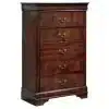 This beautiful bedroom set is the epitome of traditional decor. Its Louis Philippe-style moulding dates back to the mid-19th century, when furnishings were lavish yet somewhat simple. The deep finish gives your space a warmth and elegance you’re sure to adore for years to come.