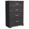 With its clean-lined look and modern attitude, this bedroom package is a fresh style awakening. A warm charcoal hue over replicated oak grain easily complements other furniture finishes. Smooth drawer fronts with antiqued pewter-tone handles complete the aesthetic.