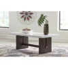 Dressed to thrill, this simply stunning coffee table offers a high-design look at a down-to-earth price. Ultra-sleek lines are accentuated with a dark waxy brown oak finish that’s so easy on the eyes. Clean-lined and modern, the plinth base and natural marble tabletop showcase quality craftsmanship and attention to detail. This table is the perfect centerpiece for a living room or family space, with a timeless look that’s made to last.