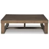 Oversized yet far from overdone, this designer coffee table masters the art of simplicity. Bold, blocky profile is enriched with plank-effect styling and a textured grayish brown finish for a look that’s cool and contemporary and a vibe that’s warm and inviting. Its generous scale makes it a natural complement for spacious sectionals.