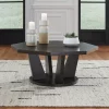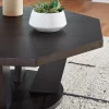 | For the ultimate in casual contemporary styling, accent your sofa or loveseat with this chic coffee table. Designed with an octagonal top and trapezoid-shaped legs, its geometric elements create a bold, eye-catching look. | |