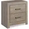 - Made of engineered wood (MDF / particleboard) and decorative laminate in vintage warm gray with subtle pearl effect over replicated cherry grain
