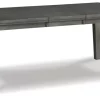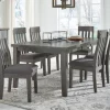 Cool and on-trend. This dining package sports a two-tone gray look for a contemporary-yet-casual feel. The rectangular table features a thick sturdy top with a self-storing butterfly leaf, making it a breeze to expand your table space. Comfortably cushioned, the side chair features a padded seat, while its contoured comb-back design adds a dash of geometric flair. Gray textural fabric pairs seamlessly with the antiqued gray finish of the table.