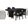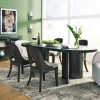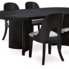Inspired by art deco design, this dining package makes a lasting impression in a simply stunning way. Magnificent curved silhouettes are enhanced with a rich layered black finish and neutral upholstery. This set makes the contemporary statement you’ve been seeking to elevate late-night dinners and full-on family feasts.