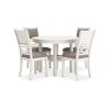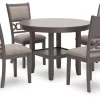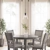 Can’t decide between classic and contemporary? Embrace the beauty of transitional style with this casually sophisticated dining table and chairs. The clean-lined profile and modern light gray finish merge with textured upholstery to create a timeless yet on-trend look when guests gather. A discreetly placed lower shelf simply makes great storage sense.