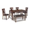 - Table made with rubberwood solids, mindi veneer and MDF substrates