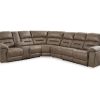 - Includes 6 pieces: left-arm facing recliner, armless recliner, armless chair, console with storage, wedge and right-arm facing press-back chaise