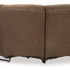 Melt into comfort at the end of your day. Accented by jumbo stitching, the supple walnut faux leather and sumptuous cushioning cradle your body in infinite positions of leisure. Simply pull the tab to recline. With dual cup holders and convenient console storage, this reclining sectional makes relaxation your sweet reward for all you do.