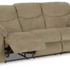 Sincere in its styling, this reclining sofa invites a relaxed sensibility into your space. Its neutral upholstery has a universal appeal, with pull-tab reclining making it easy to kick back in comfort. Providing high-quality functionality at an affordable price, this sofa marries well with a myriad of design aesthetics.