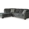 - Includes 2 pieces: left-arm facing corner chaise and right-arm facing sofa