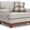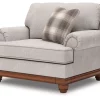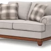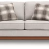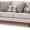 Fresh yet classic. That’s the beauty of this sofa. Dressy and also soft to the touch, its organic neutral-toned upholstery is sure to bring a transitional farmhouse aesthetic to your living space. Accent pillows in windowpane plaid and textured solid hues infuse a cozy and inviting farmhouse sensibility, while a full wraparound base and decorative turned legs complete the sofa’s timeless look. It’s the perfect place to unwind with your besties after a long day.