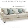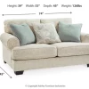 This sofa strikes a beautiful balance between classic and current. Its traditional elements include t-cushion seating and setback roll arms, angled for modern flair. Posh pillows in spa mist and jacquard paisley make a muted, mellow complement to the sofa’s casual textured chenille upholstery. And the choice of sandstone beige is a light and lovely style awakening.