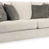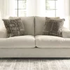 Flaunting a trendsetting silhouette, this sofa puts the contemporary in your contemporary home. Its “three over two” profile eliminates the center seat cushion, giving you elongated plushness and deep seating. And the chunky chenille fabric satisfies your need for a piece that feels as good as it looks. Soft jacquard chenille throw pillows add a splash of geometric pattern and color contrast.