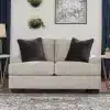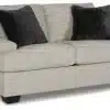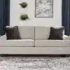 Laid-back luxury meets neutral practicality in this sofa. Taking its cues from contemporary design, the clean-lined piece is outfitted with angular arms for a layer of geometric expression. Softly upholstered, sizable cushions keep you comfortable, while black faux fur accent pillows bring a touch of soft glam. With this sofa, winning style and superb functionality go hand in hand.