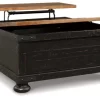 - Two-tone distressed finish (light brown top and rustic vintage black base)